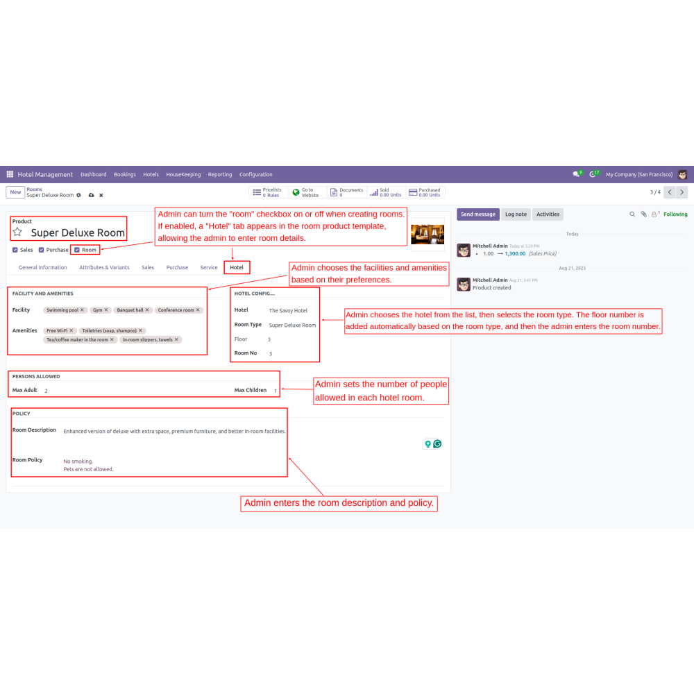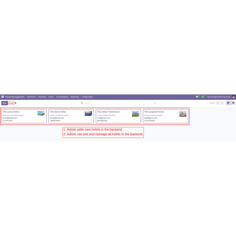 - The Advanced Hotel Management Solution app for Odoo enables hotel owners and managers to efficiently oversee their properties.