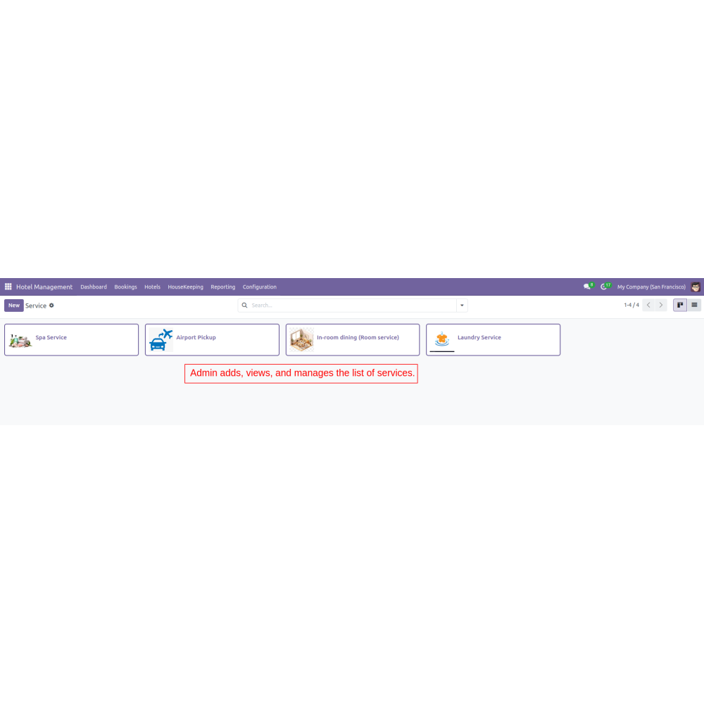 The Admin can create, edit, and manage all hotel services, facilities, and amenities.