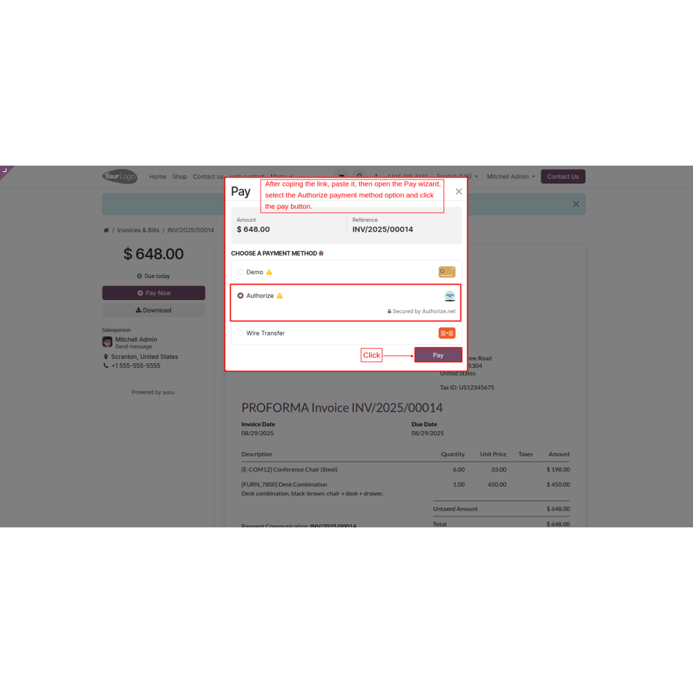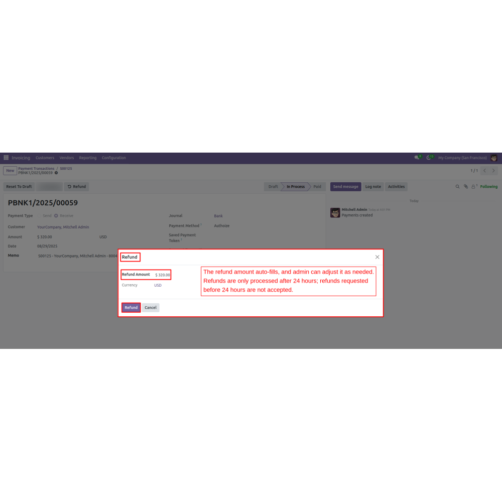 Odoo Authorize.net Payment Gateway with Refund