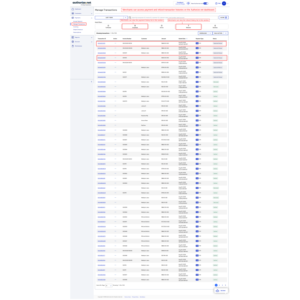 The Authorize.net Payment Gateway with Refund app enables businesses to securely accept online payments globally, supporting multiple currencies like USD, CAD, EUR, GBP, and AUD. Admins can set up the gateway with API credentials, enable/disable it from the backend, and generate payment links for orders. Customers can pay via a secure portal by entering card details. The app also allows admins to view detailed transaction histories, track payments and refunds, and process refunds after 24 hours. All transactions are securely stored and accessible via the Authorize.net sandbox dashboard, ensuring smooth payment management and enhanced checkout security.