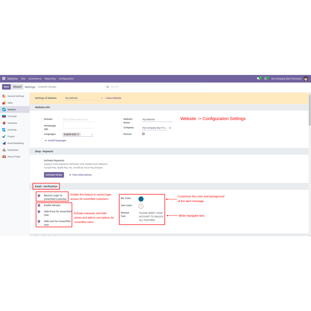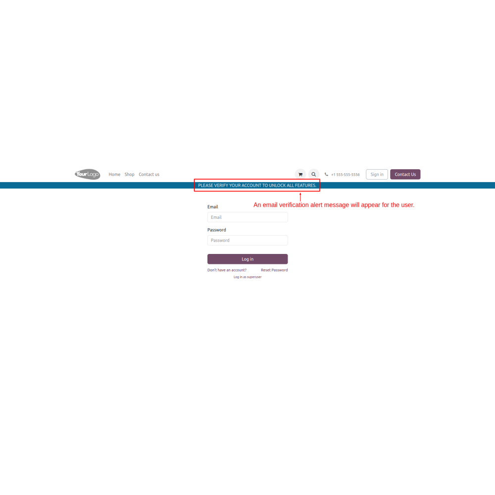 - Admins can restrict access to the shop or website for users who have not completed the email verification process. This added layer of control enhances the security of the e-commerce platform by preventing access until verification is complete.