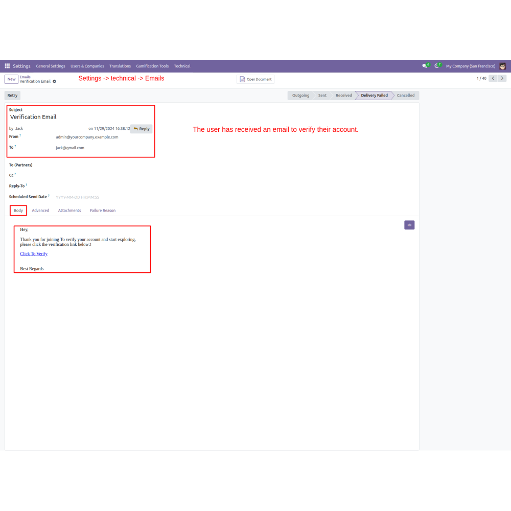 Odoo Email Verification