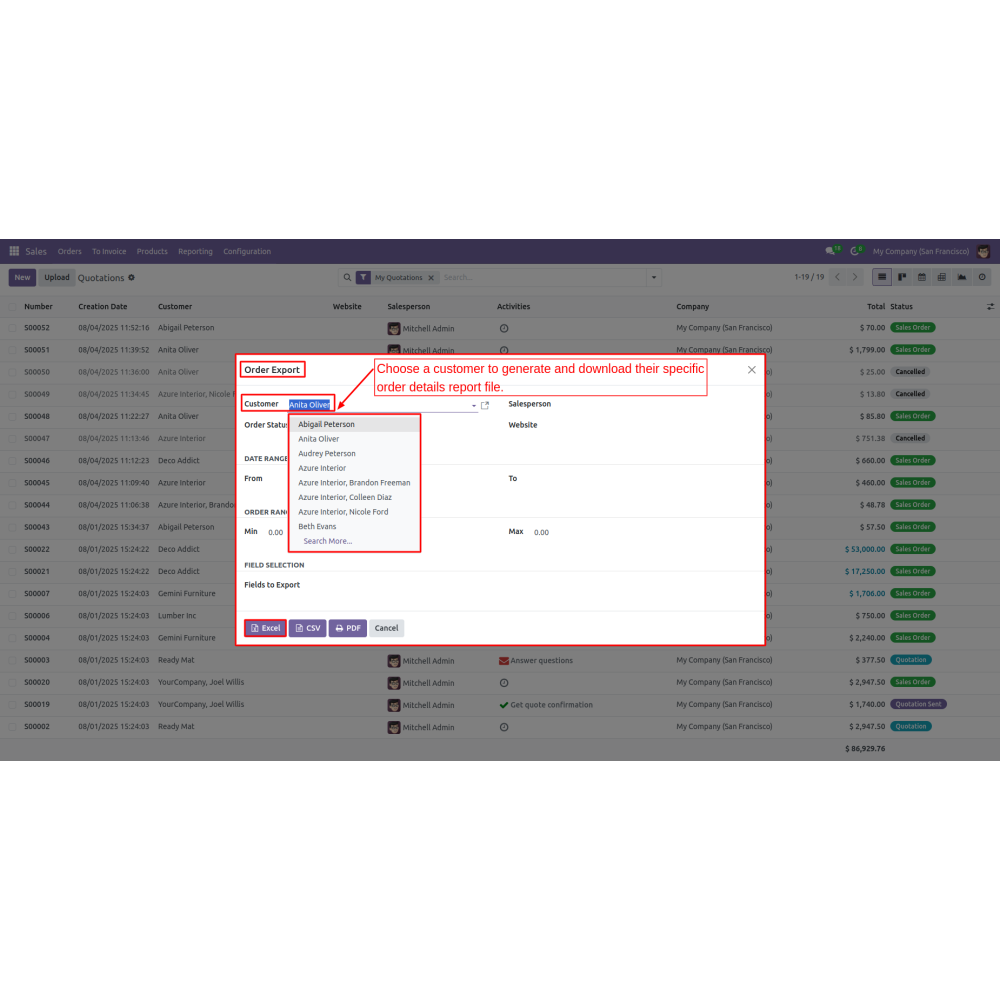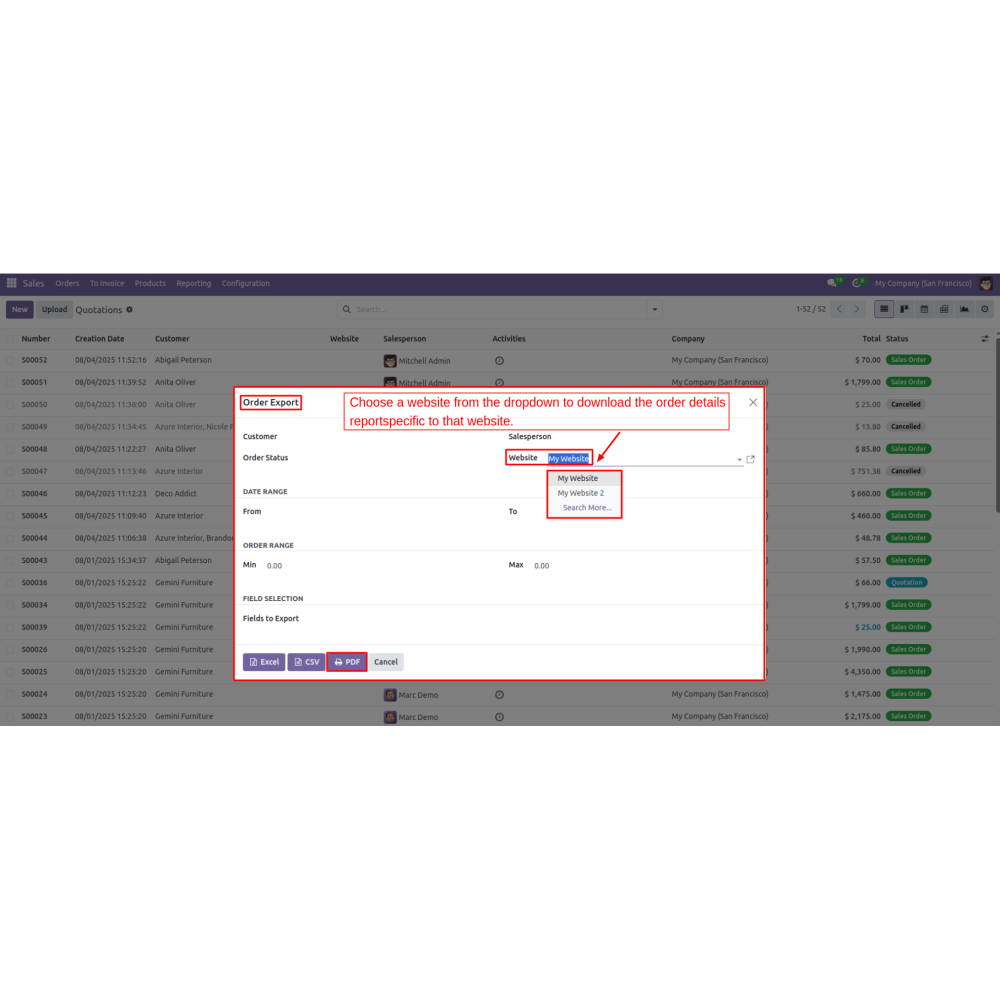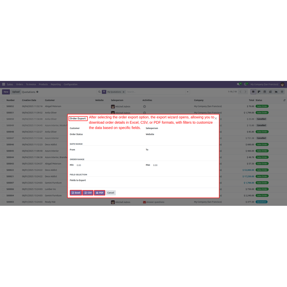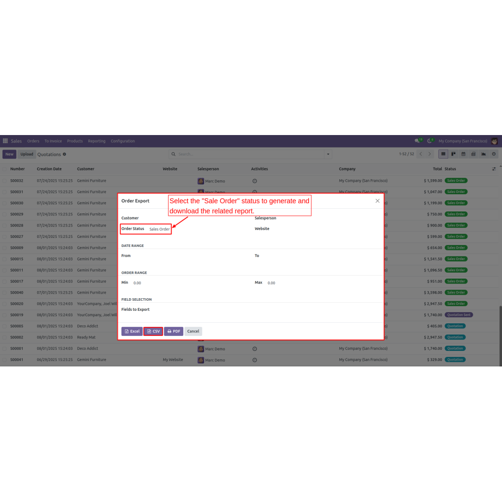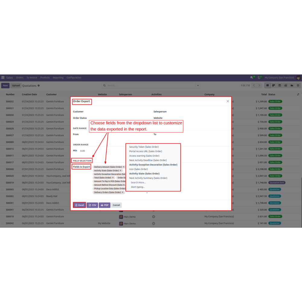 Odoo Order Export Pro (CSV, PDF, EXCEL)