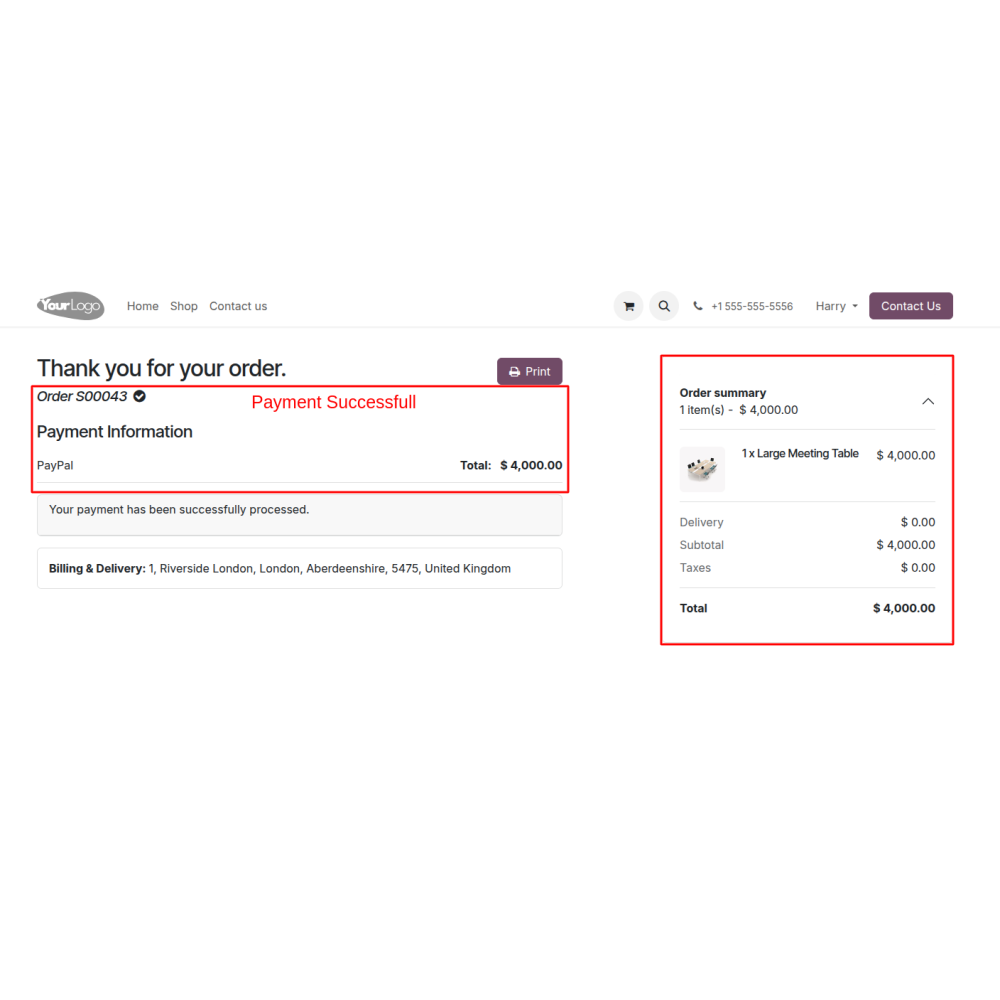 - Once paid, the transaction is marked complete in Odoo via the shared payment link.