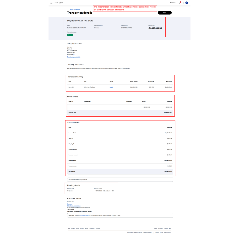 - Admins can view all payment and refund details in the Odoo backend, while merchants can also review transactions on the PayPal sandbox dashboard.