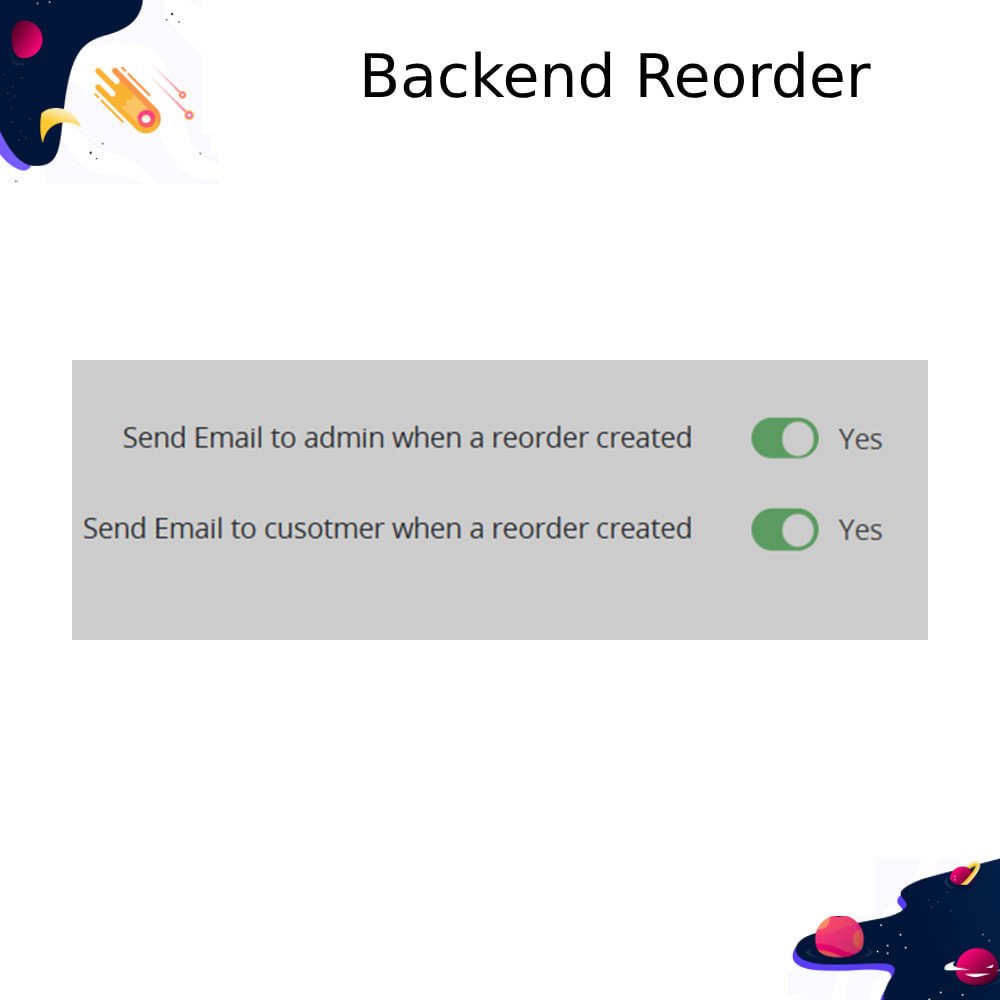 Choose whether to send order confirmation emails to customers when a reorder is placed from the back office, offering full control over customer communication.