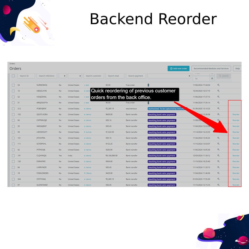 - Step-3. Now you will see the reorder button on order list page in backend.