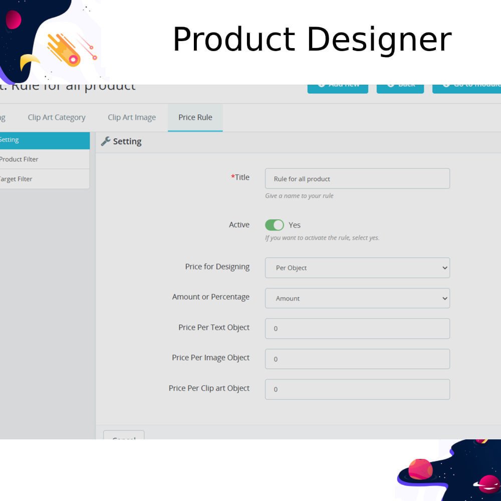 - Activate or deactivate product designer feature.