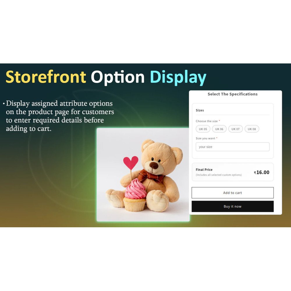 Add custom product options on product pages. Collect extra details and add-on prices easily.